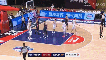 第三节比赛中,易建联篮下接球直接面对防守人强起,却被直接帽了下来。随后,他接到被盖的球再次篮下强起,被后面的天津球员直接把球盖出了底线。