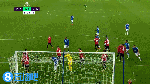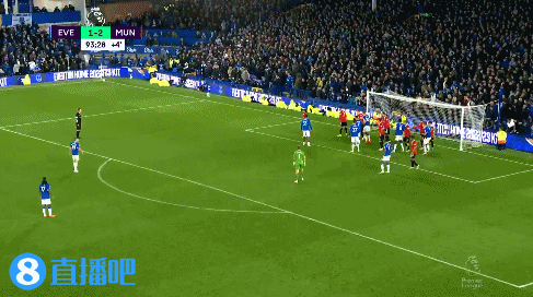 第93分钟,埃弗顿的角球机会,皮克福德上来没能顶到皮球。↓
